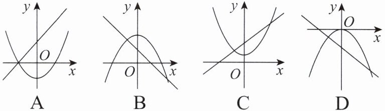 2. 在同一平面直角坐标系中,一次函数 $ y = -kx + 1 $ 与二次函数 $ y = x^2 + k $ 的大致图象可以是(