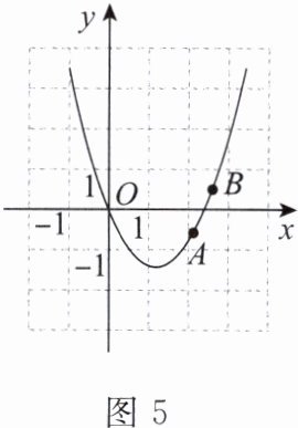 1. 图 5 是二次函数 $ y = ax^{2} + bx + c $ 的图象,已知图象过 $ A(2.18,-0.51) $,$ B(2.68,0.54) $ 两点,则关于 $ x $ 的一元二次方程 $ ax^{2} + bx + c = 0 $ 的一个解可能是(