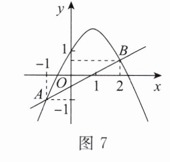 2. 如图 7,二次函数 $ y = ax^{2} + bx + c $ 与一次函数 $ y = mx + n $ 的图象交于 $ A $,$ B $ 两点,则关于 $ x $ 的一元二次方程 $ ax^{2} + bx + c = mx + n $ 的解为(