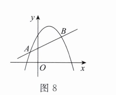 4. 如图 8,直线 $ y = mx + n $ 与抛物线 $ y = ax^{2} + bx + c $ 交于 $ A(-1,p) $,$ B(4,q) $ 两点,则关于 $ x $ 的不等式 $ mx + n < ax^{2} + bx + c $ 的解集是