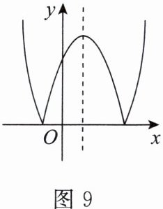 5. 一名同学画出“鹊桥”函数 $ y = |x^{2} - 2x - 3| $ 的图象如图 9 所示,并写出下列结论:①图象与坐标轴的交点为 $ (-1,0) $,$ (3,0) $ 和 $ (0,3) $;②图象具有对称性,对称轴是直线 $ x = 1 $;③当 $ -1 \leq x \leq 1 $ 或 $ x \geq 3 $ 时,函数值 $ y $ 随 $ x $ 值的增大而增大;④当 $ x = -1 $ 或 $ x = 3 $ 时,函数取得最小值,为 $ 0 $;⑤当 $ x = 1 $ 时,函数取得最大值,为 $ 4 $。其中结论正确的个数是