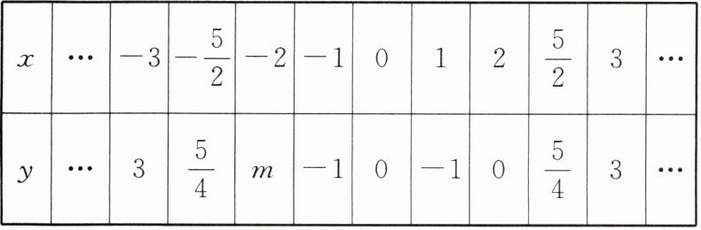 | $ y $ | …$ $ | $ 3 $ | $ \frac{5}{4} $ | $ m $ | $ -1 $ | $ 0 $ | $ -1 $ | $ 0 $ | $ \frac{5}{4} $ | $ 3 $ | …$ $ |