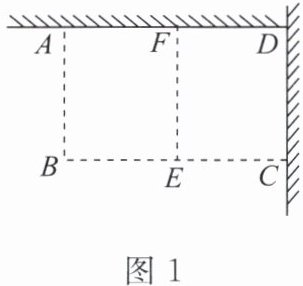 例 如图 1,要用篱笆(虚线部分)围成一个矩形苗圃 $ ABCD $,其中两边靠的墙足够长,中间用平行于 $ AB $ 的篱笆 $ EF $ 隔开,已知篱笆的总长度为 $ 18 \ m $。设矩形苗圃 $ ABCD $ 的一边 $ AB $ 的长为 $ x(m) $,矩形苗圃 $ ABCD $ 的面积为 $ y(m^{2}) $。