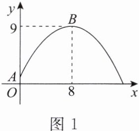 2. 如图1,小明将一只皮球从$A$处抛出去,它所经过的路线是某个二次函数图象的一部分。若小明的出手处$A与地面的距离OA = 1m$,当球飞越的水平距离为$8m$时,球到达最高点$B$处,离地面的高度为$9m$,则这个二次函数的解析式为