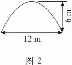 例:图2是一座古拱桥的截面图,拱桥桥洞上沿是抛物线形状,拱桥的跨度为$12m$,桥洞与水面的最大距离是$6m$,桥洞两侧壁上各有一盏距离水面$4m$的景观灯,求两盏景观灯之间的水平距离。