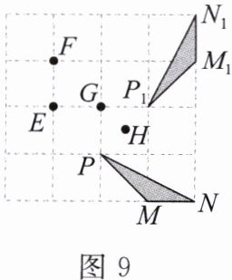2. 如图 9,在$4×4$的正方形网格中,$\triangle MNP$绕某点旋转一定的角度,得到$\triangle M_1N_1P_1$,则其旋转中心一定是(