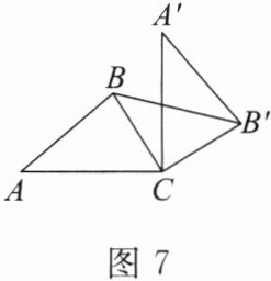 3. 如图 7,将$\triangle ABC绕点C顺时针旋转得到\triangle A'B'C$,已知$\angle ACA' = 90^{\circ}$,$BC = 5$,连接$BB'$,则$BB'$的长为