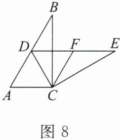 4. 如图 8,在$Rt\triangle ABC$中,$\angle ACB = 90^{\circ}$,$\angle B = 30^{\circ}$,将$\triangle ABC绕点C$顺时针旋转