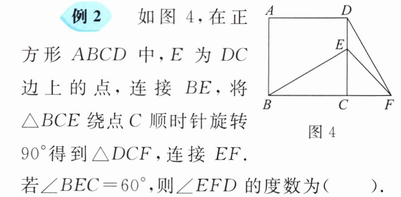 $^{\circ}后得到\triangle DEC$,且点$D刚好落在AB$边上。若$F是DE$的中点,则$AB= $2