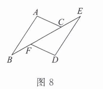 1. 图8中的两个三角形关于某点成中心对称,则该点是( ).
