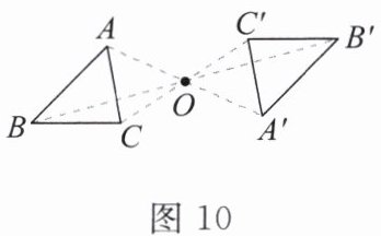5. 如图12,已知$\triangle ABC与\triangle A'B'C'关于点O$对称,请在图中画出对称中心$O$.