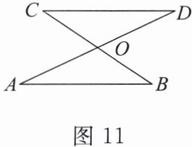 4. 如图11,已知$\triangle AOB与\triangle DOC$成中心对称,$\triangle AOB$的面积是2,$AB = 4$,则$\triangle DOC中CD$边上的高是