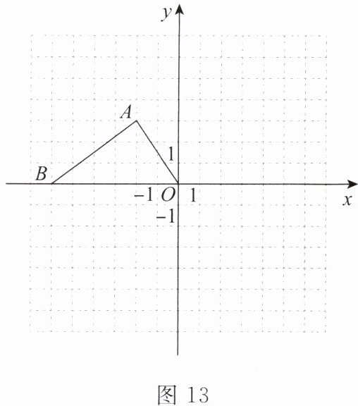 16. (14分)如图13,在平面直角坐标系中,△ABO的顶点坐标分别是A(-2,3),B(-6,0),O(0,0)。