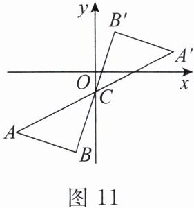 14. 如图11,在平面直角坐标系中,△ABC与△A'B'C关于点C(0,-1)对称,若点A的坐标为(-4,-3),则点A'的坐标为