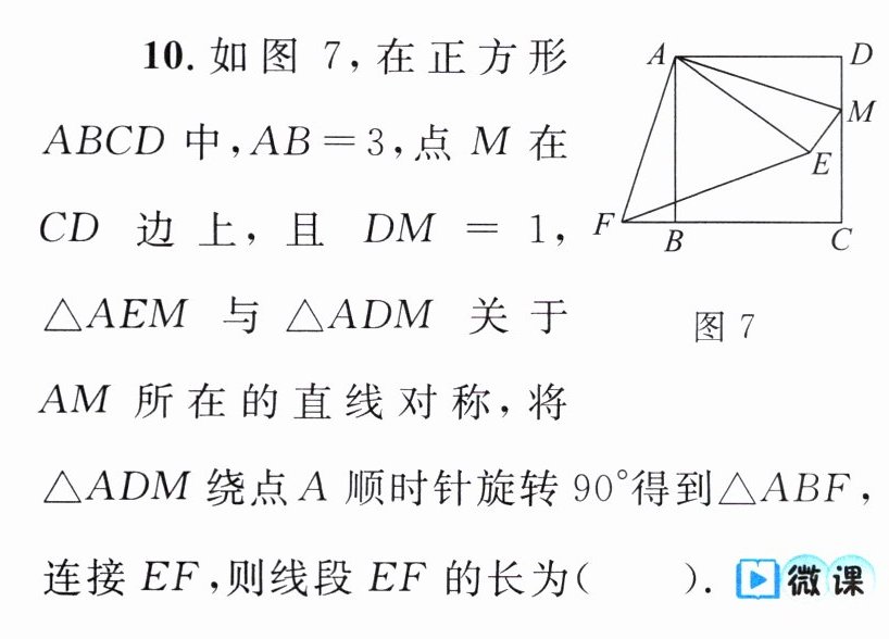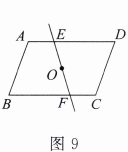 12. 如图9,四边形ABCD是中心对称图形(AB≠AD),对称中心为点O,过点O的直线与AD,BC分别交于E,F两点(AE≠DE),则图中相等的线段有