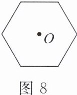11. 如图8,将正六边形绕点O旋转一定角度后能与自身重合,那么旋转的角度至少是