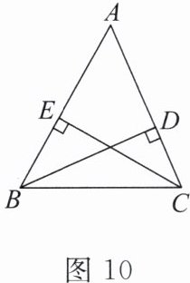 6. 如图10,在△ABC中,CE,BD分别是AB,AC边上的高。试判断B,C,D,E四点是否在同一个圆上,若在,请指出该圆的圆心和半径;若不在,请说明理由。