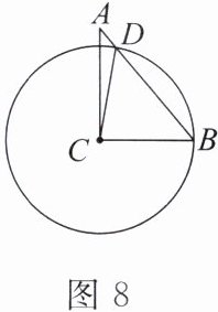 4. 如图8,在△ABC中,∠ACB= 90°,∠A= 40°,以C为圆心,CB为半径的圆交AB于点D,连接CD,则∠ACD=