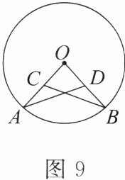 5. 如图9,在⊙O中,C,D分别是半径OA,OB的中点,求证:AD= BC。
