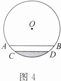 例2 如图4,圆柱形水管内原有积水的水面宽CD= 12cm,水深2cm。水面再上升2cm至AB处,求此时水面宽AB。