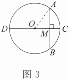 例1 如图3,⊙O的直径CD= 20,AB是⊙O的弦,AB⊥CD,垂足为M,OM:OC= 3:5。求AB的长。