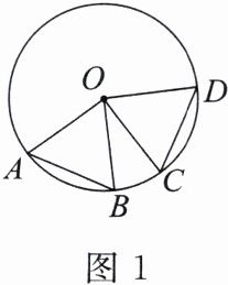 2. 如图1,A,B,C,D是⊙O上的四点,连接OA,OB,OC,OD,AB,CD。