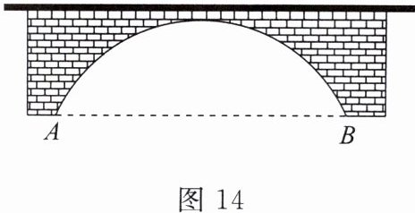 7. 如图14,一座拱形公路桥的圆弧形桥拱的水面跨度AB= 48m,桥拱到水面的最大高度为16m。