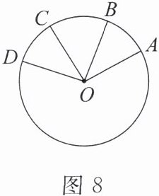 4. 如图8,在⊙O中,$\overset{\frown}{AC}= \overset{\frown}{BD}$,∠AOB= 40°,则∠COD=