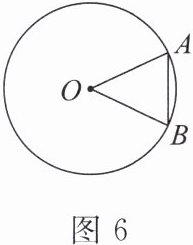 2. 如图6,OA,OB是⊙O的两条半径,∠OBA= 65°,则$\overset{\frown}{AB}$所对的圆心角的度数为(