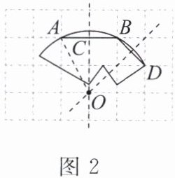例 2 小英家的圆形镜子被打碎了,其中一块含圆弧的碎片如图 2 所示(网格中的每个小正方形边长均为 1,圆弧上的点$A$,$B$,$D$均在格点上),则这个镜面的半径是______.(结果保留根号)