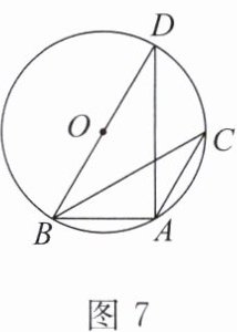 3. 如图 7,$\triangle ABC内接于\odot O$,$\angle BAC = 120^{\circ}$,$AB = AC = 4$,$BD为\odot O$的直径,则$\odot O$的半径为
