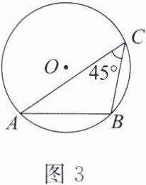例 3 如图 3,$\triangle ABC内接于\odot O$,$\angle C = 45^{\circ}$,$AB = 4$. 求$\odot O$的半径.