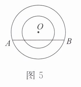 2. 如图 5,两个同心圆,大圆的半径为 $ 5 $,小圆的半径为 $ 3 $,若大圆的弦 $ AB $ 与小圆有公共点,则弦 $ AB $ 的取值范围是(