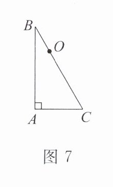 5. 如图 7,在$\mathrm{Rt} \triangle ABC$中,$\angle A = 90^{\circ}$,$\angle C = 60^{\circ}$,点 $ O $ 在 $ BC $ 上,$ OB = x $,$\odot O$的半径为 $ 2 $,求当 $ x $ 分别在什么范围内取值时,直线 $ AB $ 与$\odot O$相交、相切、相离。