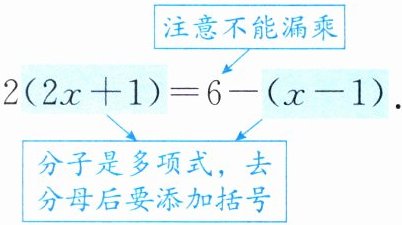 思路点拨 (1) 去分母时,在方程两边都乘 3 和 6 的最小公倍数 6。