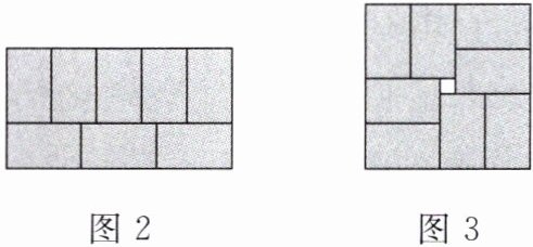 8. 小敏做拼图游戏时发现:8个一样大小的小长方形恰好可以拼成一个大的长方形,如图2所示。小方看见了,也来试一试,结果拼成了如图3所示的正方形,不过中间留下一个空白部分,恰好是一个边长为2 cm的小正方形。请你求出每个小长方形的长和宽。