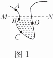 6. 如图1,勘测小组以水平线$MN$为基准,测得4个勘测点的高度(单位:$m$)分别是$+2.3$,$-5$,$-1$,$-2.5$。图中勘测点$D$的高度是( )。
