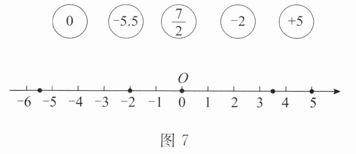 解:连线如图 4. 各数自左向右排列为-5.5,-2,0,$\frac{7}{2}$,+5.