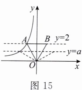 【探究思考】 (4)如图 15,将(3)中“直线 $ y = 2 $”改为“直线 $ y = a(a > 0) $”,其他条件不变,则 $ \triangle OAB $ 的面积是______。