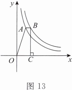 5. (2023 湖南湘西中考)如图 13,点 $ A $ 在函数 $ y = \frac{2}{x}(x > 0) $ 的图象上,点 $ B $ 在函数 $ y = \frac{3}{x}(x > 0) $ 的图象上,且 $ AB // x $ 轴,$ BC \perp x $ 轴于点 $ C $,则四边形 $ ABCO $ 的面积为( )。