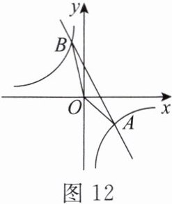 4. 如图 12,已知 $ A(n,-2) $,$ B(-1,4) $ 是一次函数 $ y = kx + b $ 和反比例函数 $ y = \frac{m}{x} $ 的图象的交点。