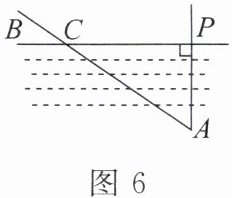 4. 如图 6,小刚同学要测量小河两岸相对的两点 $ P $,$ A $ 的距离,他在河岸边取 $ PA $ 的垂线 $ PB $ 上的一点 $ C $,测得 $ PC = 100 m $,$ \angle PCA = 35^{\circ} $,则小河宽 $ PA \approx $____ $ m $。(精确到 $ 1 m $,用计算器计算)