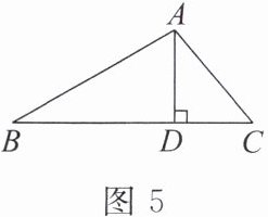 3. 如图 5,在 $ \triangle ABC $ 中,$ AD $ 是 $ BC $ 边上的高,$ \angle B = 30^{\circ} $,$ AB = 2\sqrt{33} $,$ AC = 7 $,则 $ \tan \angle ACD $ 的值为( )。