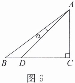 8. 如图 9,在 $ Rt\triangle ABC $ 中,$ \angle C = 90^{\circ} $,$ D $ 为 $ BC $ 边上的点,$ AB = 5 $,$ BD = 1 $,$ \tan B = \frac{3}{4} $。