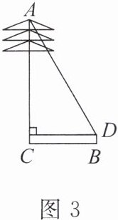 2. (2022 江苏南通中考)如图 3,B 为地面上一点,测得点 B 到树底部 C 的距离为 10 m,在 B 处放置 1 m 高的测角仪 BD,测得树顶 A 的仰角为 60°,则树高 AC 为______m(结果保留根号)。