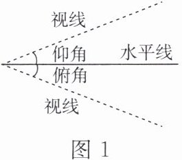 1. 仰角、俯角:如图 1,在视线与水平线所成的角中,视线在水平线______的叫作仰角,视线在水平线______的叫作俯角。