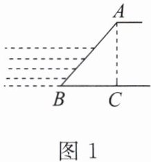1. 如图 1,$AB$是河堤横截面的迎水坡,坡高$AC= \sqrt{3}$,水平距离$BC = 1$,则斜坡$AB$的坡度是( )。