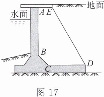 【收集材料】图 17 是某个驳岸剖面示意图,通过查阅相关数据及说明可知,点$A$,$B$,$C$,$D$,$E$在同一竖直平面内,$AE与CD$均与地面平行,岸墙$AB\perp AE于点A$,$\angle BCD = 135^{\circ}$,$\angle EDC = 60^{\circ}$,$ED = 6$m,$AE = 1.5$m,$CD = 3.5$m。