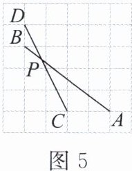 10. (2022 四川广元中考) 如图 5,在正方形网格纸中,每个小正方形的边长都相等,$A$,$B$,$C$,$D$ 都在格点处,$AB$ 与 $CD$ 相交于点 $P$,则 $\cos \angle APC$ 的值为( )。