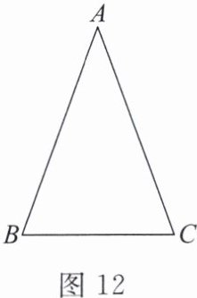 如图 12,在 $\triangle ABC$ 中,$AB = AC$,顶角 $A$ 的正对记作 $sad\ A$,这时 $sad\ A = \frac{底边}{腰} = \frac{BC}{AB}$。容易知道一个角的大小与这个角的正对值也是相互唯一确定的。